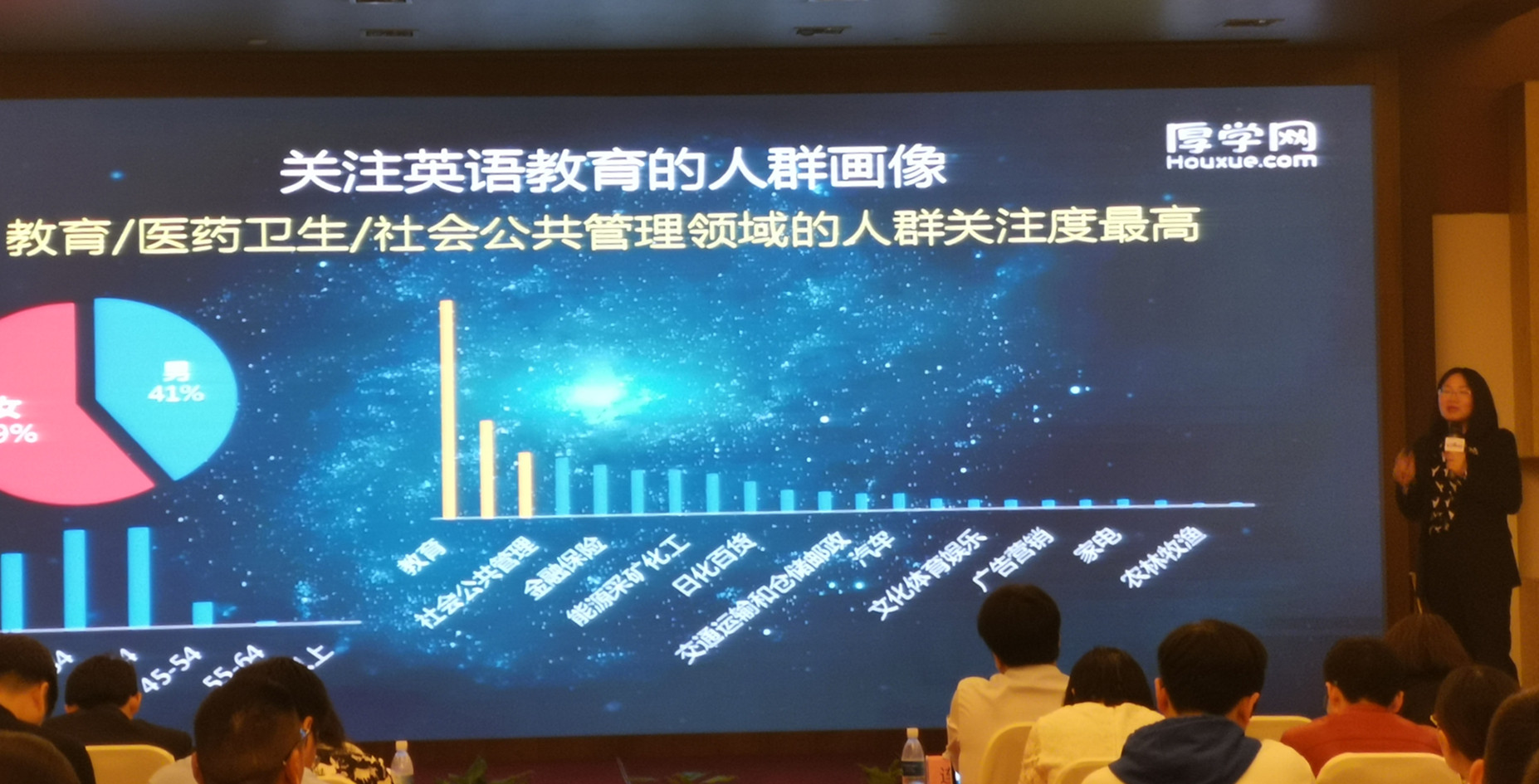 厚學網(wǎng)的運營總監(jiān)魏靜靜向大家展示了南京本地教育行業(yè)大數(shù)據(jù),詳細地分析了當下教育行業(yè)各細分行業(yè)的發(fā)展情況,讓大家更加透徹地知道了市場情況,對教育企業(yè)的發(fā)展方向及策略起到一定的參考意義。